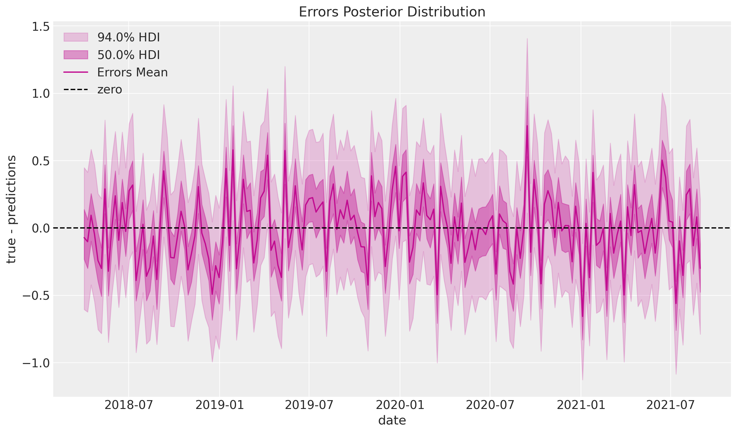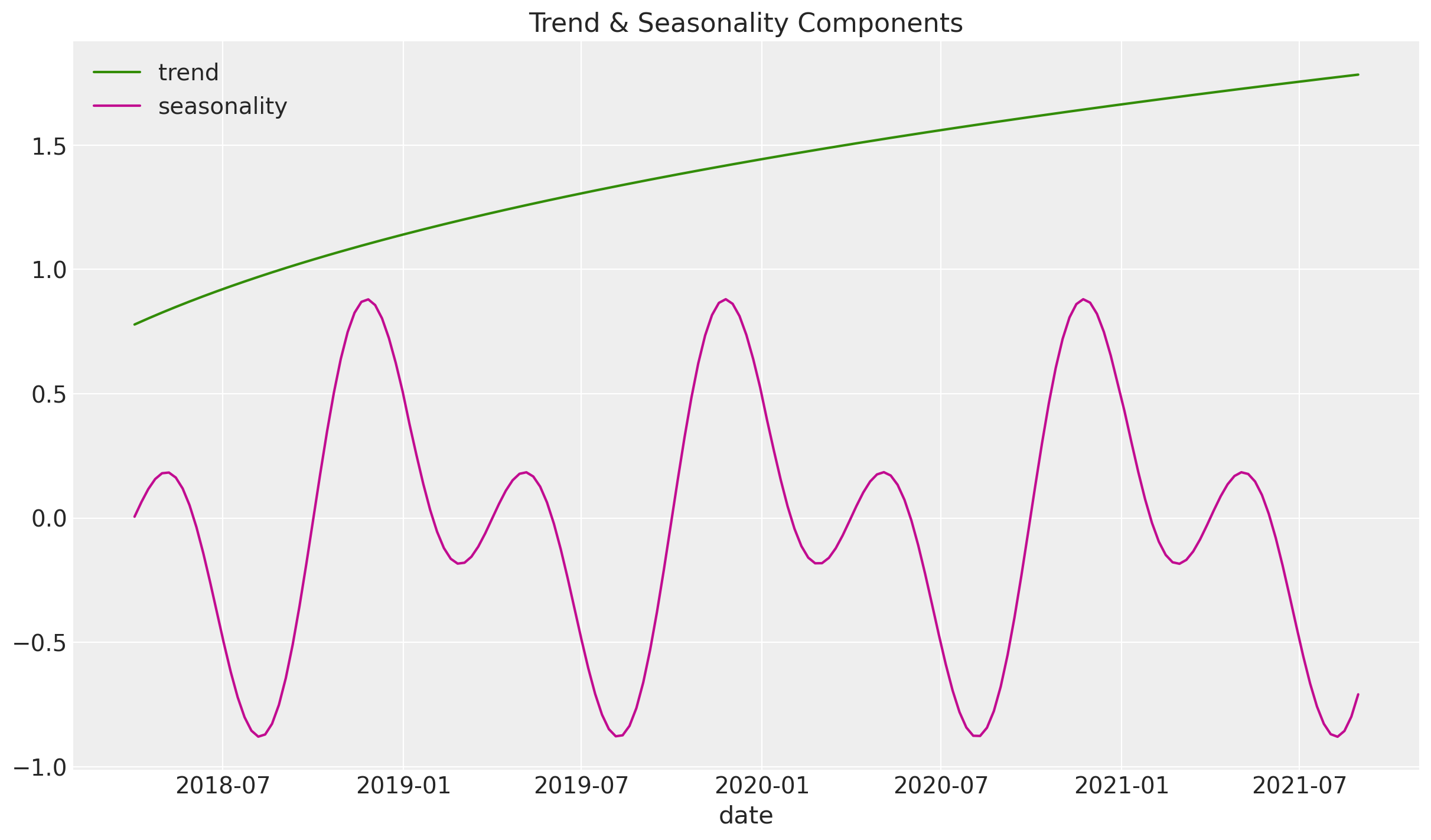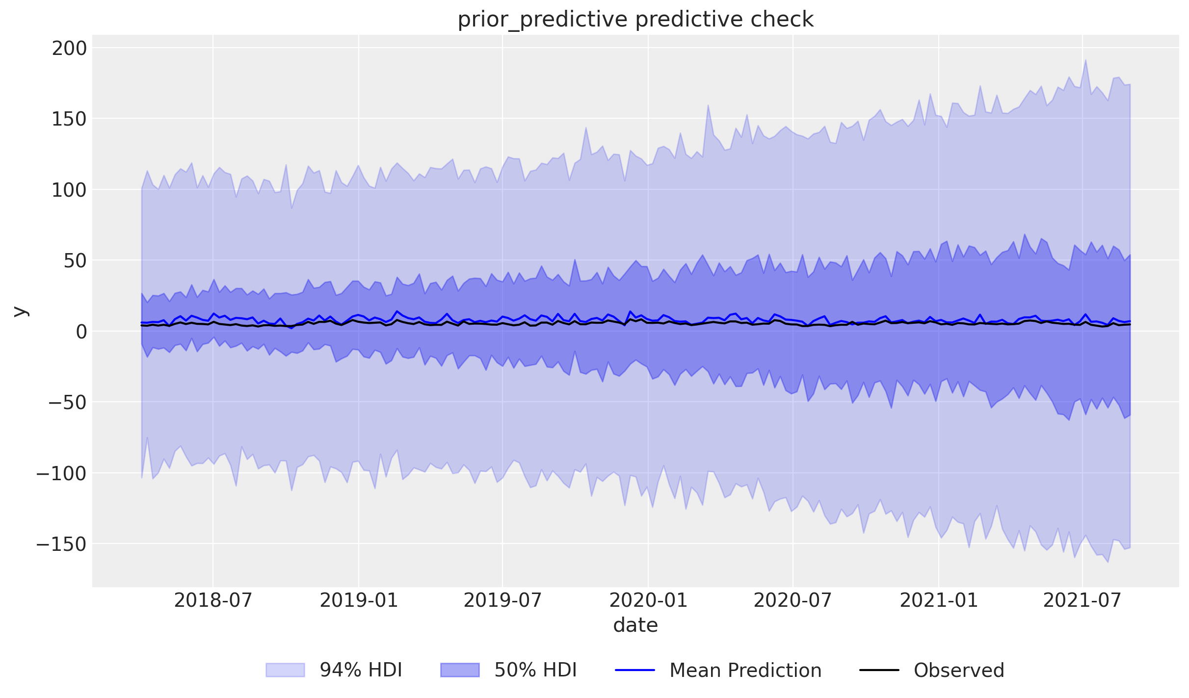 • Time-varying Intercept: Capture time-varying baseline contributions in your model (using modern and efficient Gaussian processes approximation methods). That is, we allow the intercept term \(\alpha = \alpha(t)\) to vary over time. See mmm_tvp_example.