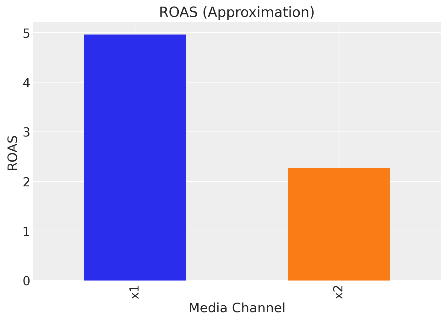 In this notebook we work out a simulated example to showcase the media mix Model (MMM) API from pymc-marketing. This package provides a pymc implementation of the MMM presented in the paper Jin, Yuxue, et al. “Bayesian methods for media mix modeling with carryover and shape effects.” (2017). We work with synthetic data as we want to do parameter recovery to better understand the model assumptions. That is, we explicitly set values for our adstock and saturation parameters (see model specification below) and recover them back from the model. The data generation process is as an adaptation of the blog post “Media Effect Estimation with PyMC: Adstock, Saturation & Diminishing Returns” by Juan Orduz.